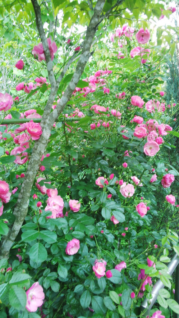 アプローチ中ほど ヤマボウシに支えて アンジェラが