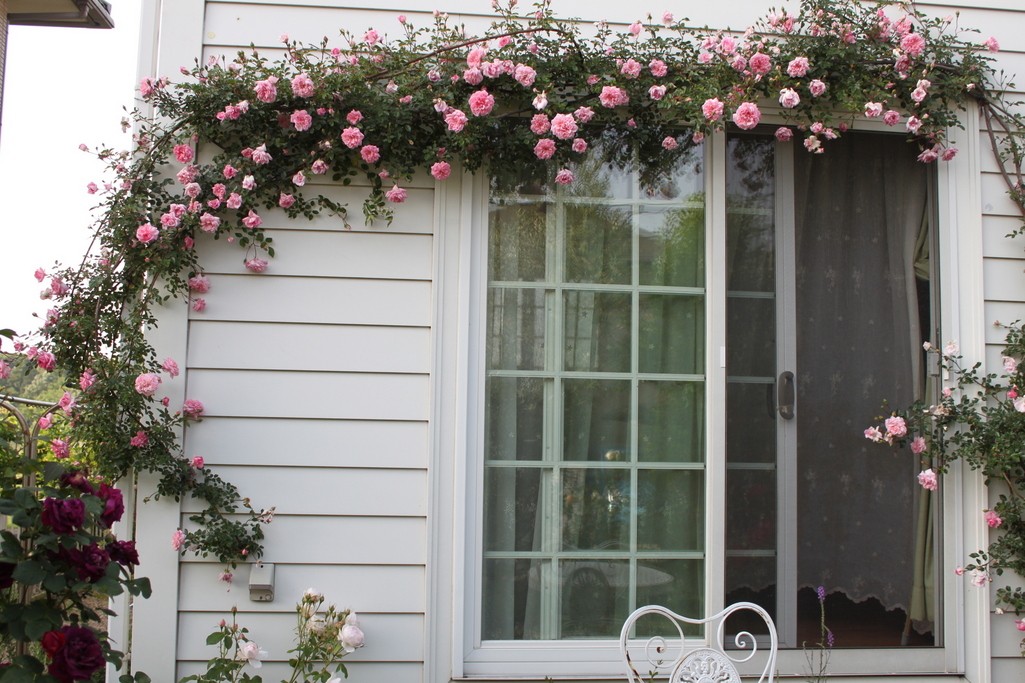 可愛く咲いていますね!真っ白なお家にどの薔薇も生き生きとしています^^