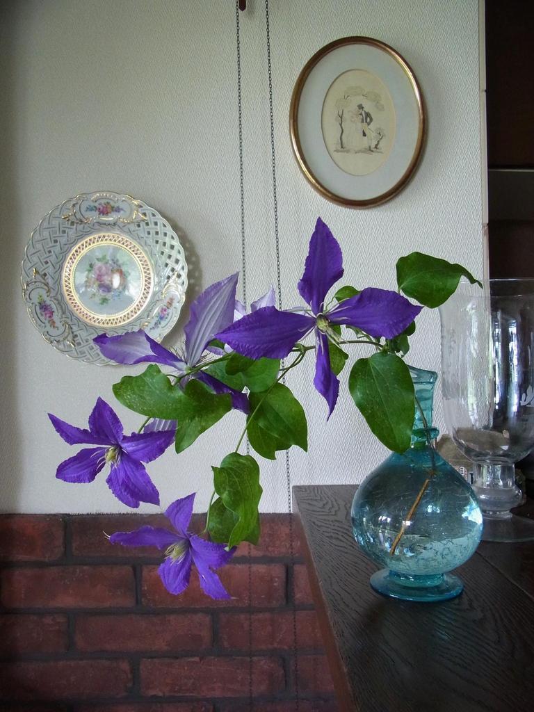 バラの花がら切りをしていたら、絡んでいたクレマチスまでチョッキ~ン・・でも家の中で涼やかに・・
