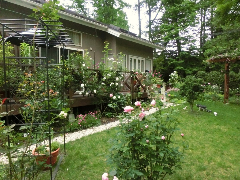 軽井沢にもやっとバラのシーズンがやってきました。庭にはアルンウイック・キャッスルの香りが漂っています。