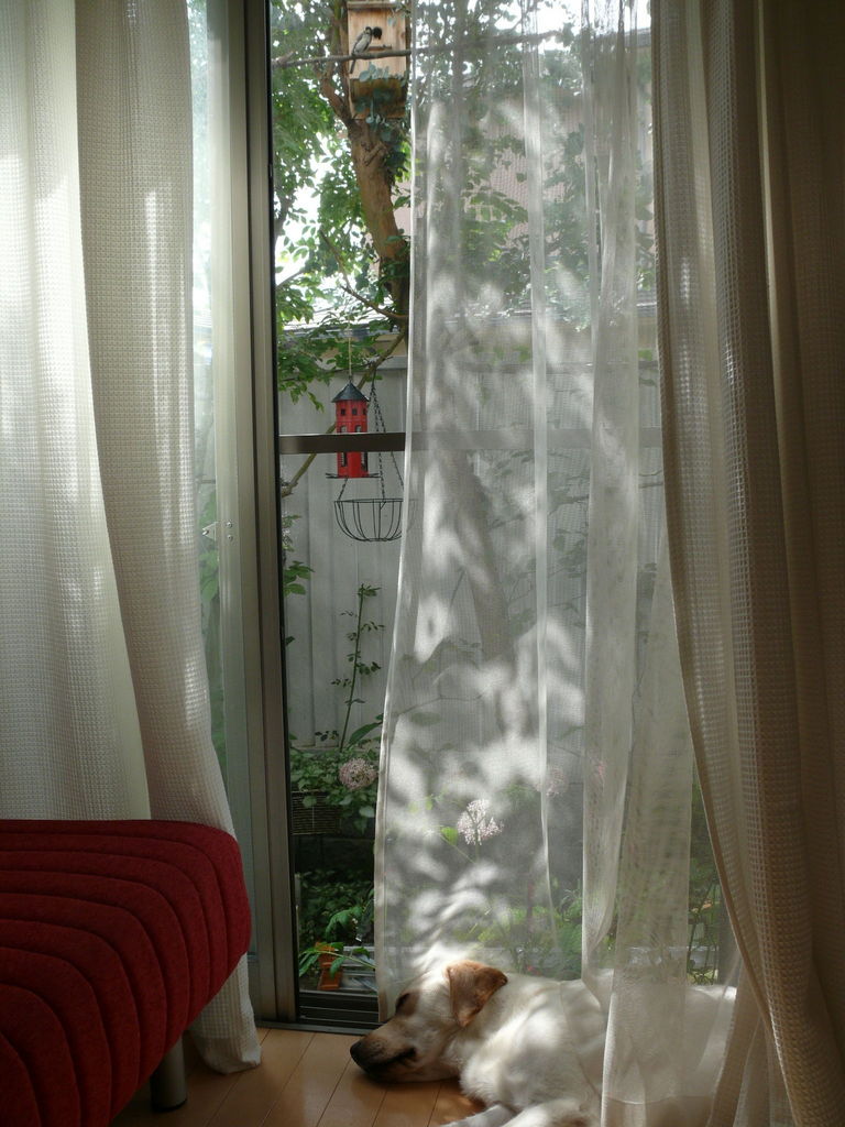 うちのわんこも窓辺で巣箱を見守っています。 シジュウカラはカーテンを開けていても私やわんこを怖がりません。イタチよりましなのかな?シジュウカラがいるの見えますか?