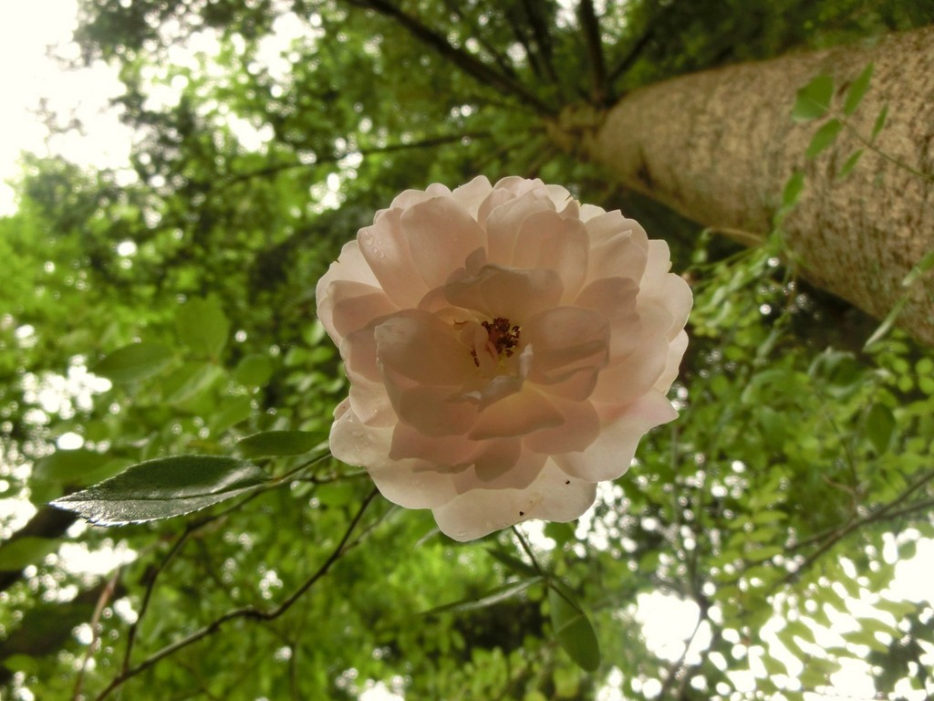 シーホーム。8年ほど前に鉢植えで購入したバラですが、軽井沢に来てから大きなモミの木の足元に地植えしています。