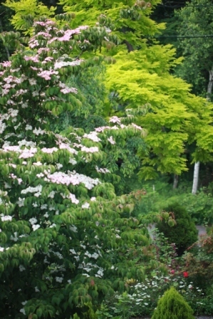 ヤマボウシの花がピンク色になってきました。