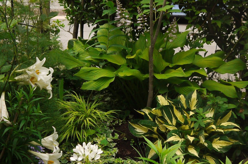 ブルーコーナーのアーチをくぐると、今はホスタやユリが咲き出して、涼しげ風景になって来ました。バラもろくにアップしないうちに、こんな季節になってしまいました。m(__)m