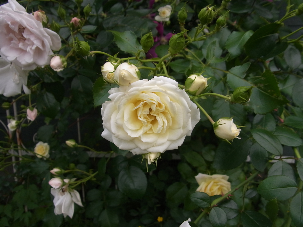 淡い黄色の花束咲き。飾りやすくて可愛いバラです。