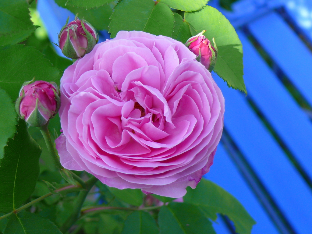 ラベンダ-ブル-のペンキは青にピンクの混ざった色合いなのでピンクの薔薇とも相性バッチリ!