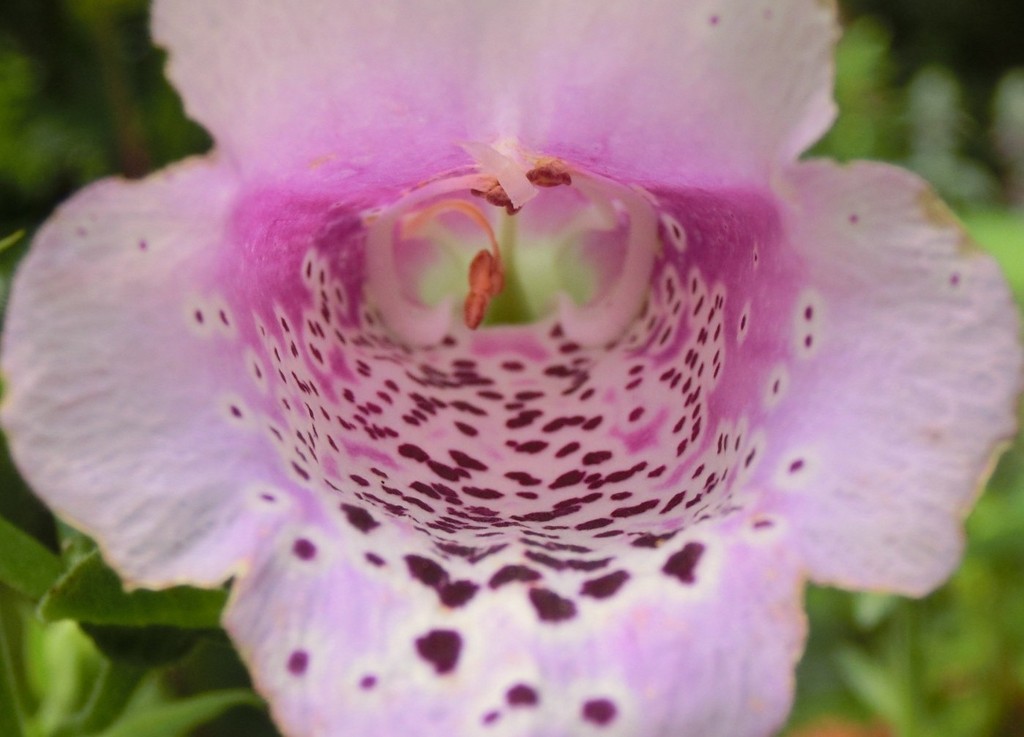 庭のジギタリスがまだぽつぽつ咲いています。花の中をのぞいてみました。