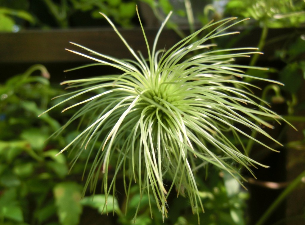 これはクレマチス・オリエンタリスの花後の状態。黄色いベル型の花からは想像がつきません。