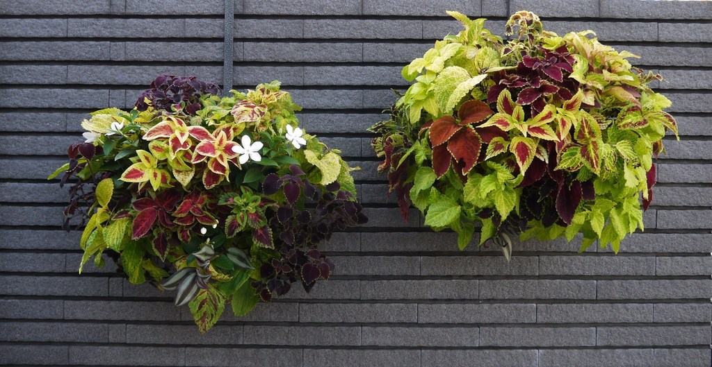 2つのコリウスのハンギングが良い感じに