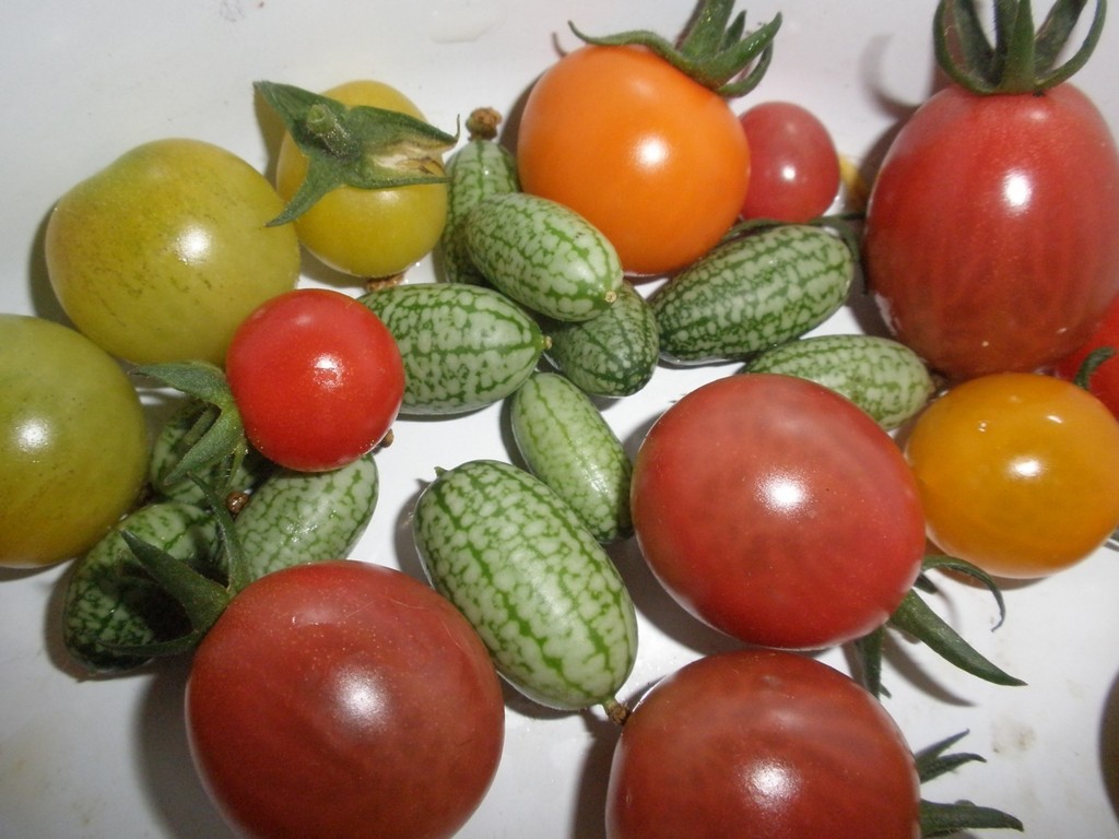写真だと大きく見えますが、ミニトマトとメキシコキュウリです。