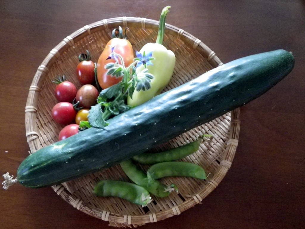 今年初のキュウリはちょっと大きくなりすぎました。キュウリがなると油断禁物ですね。