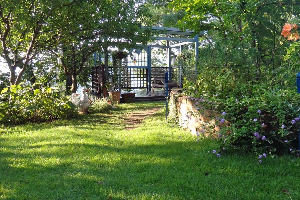 ナッツさま、コメントありがとうございます。緑のおかげで猛暑でも朝のうちは何とか庭に出られます。暑い中ステンドグラスを設置しましたが、とても存在感があって気に入っています。
