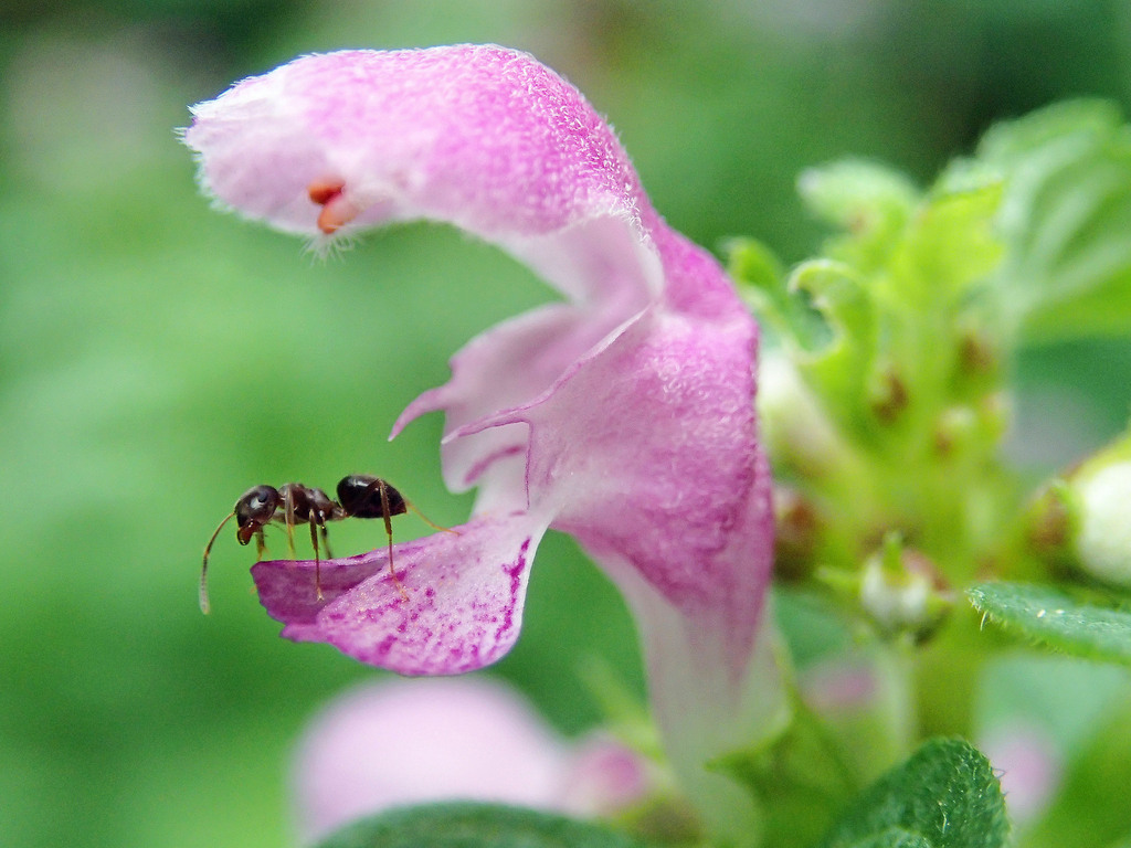 ラミウムの花がなんだか蛇の様で、アリん子が食べられちゃいそうな感じに見える(#^▽^#)