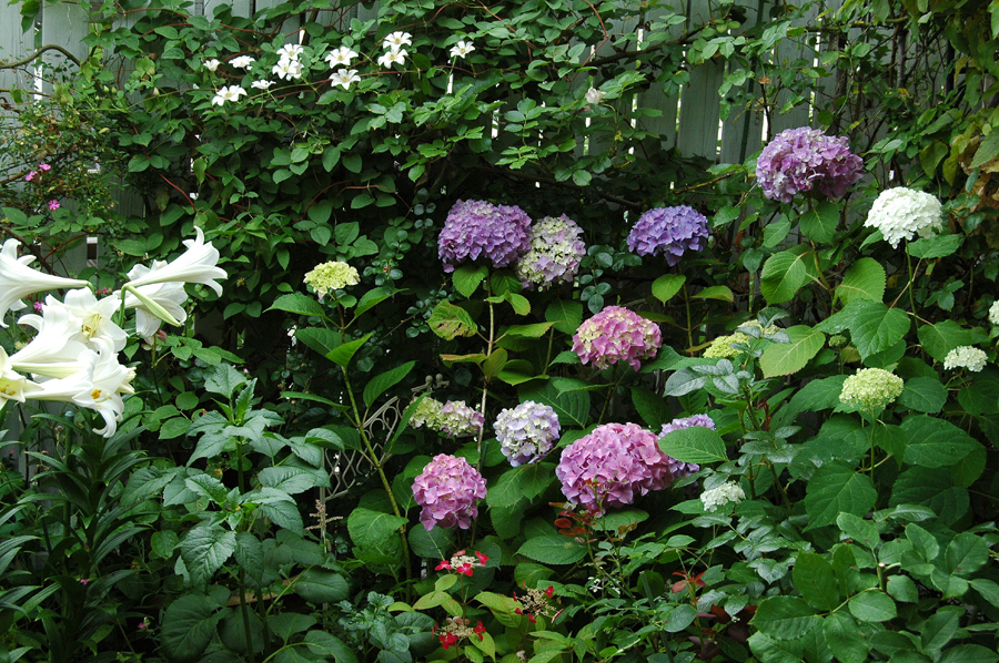 アジサイとユリが満開のガーデンです。
