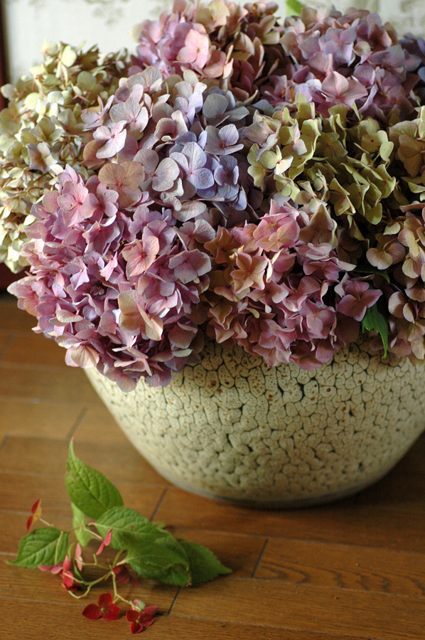 あじさいって長く楽しめて良いですね。微妙な色あいがステキ。