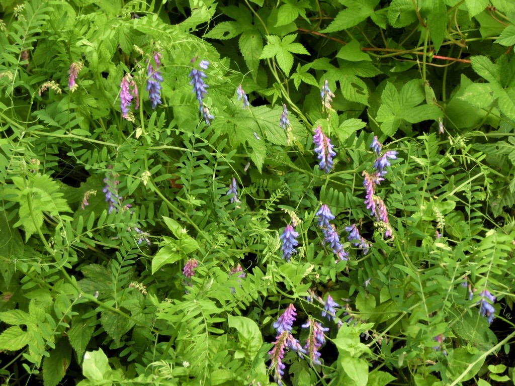 散歩していると草むらにはクサフジが咲いています。