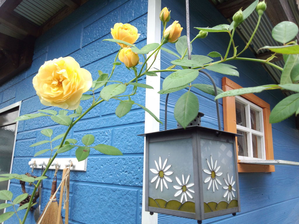 昨年植えたグラハムトーマスですが、やっと長いシュートが出て先に花を付けてくれました!途中ピンチも考えたのですが・・・