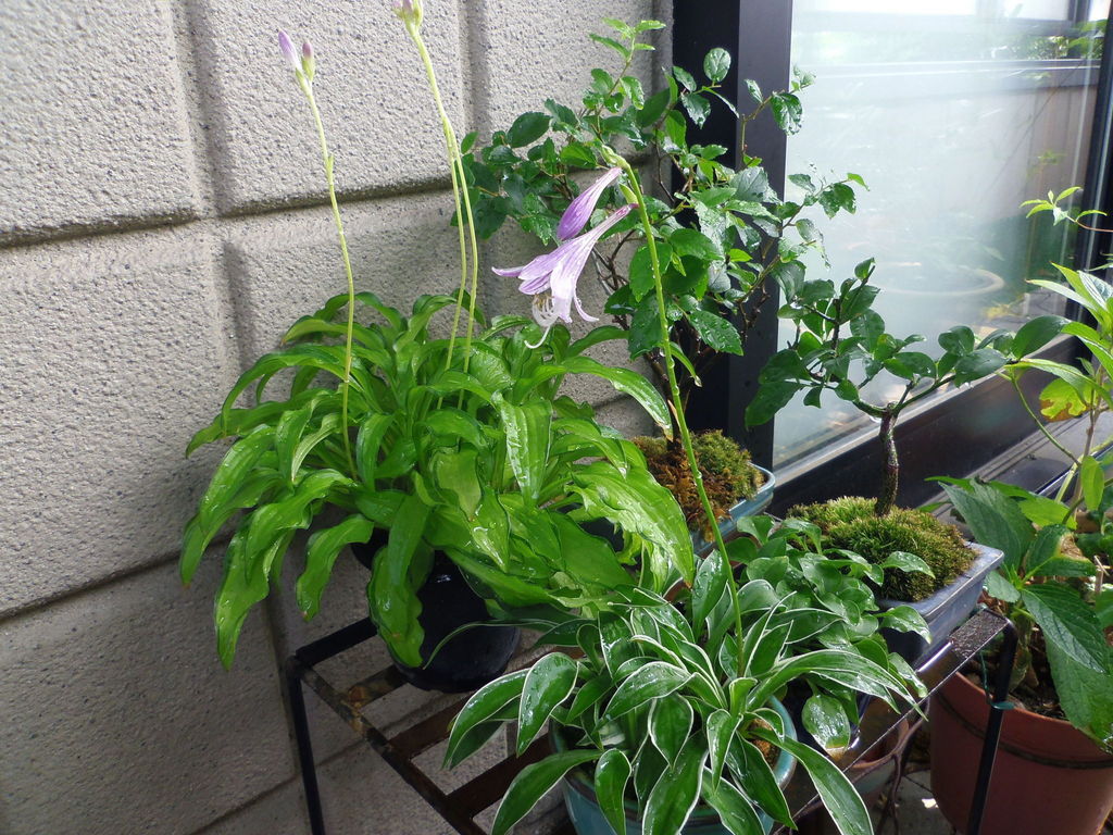 ミニ盆ギボシに花が咲きました。特に奥のは初めて付いたので、うれしい!