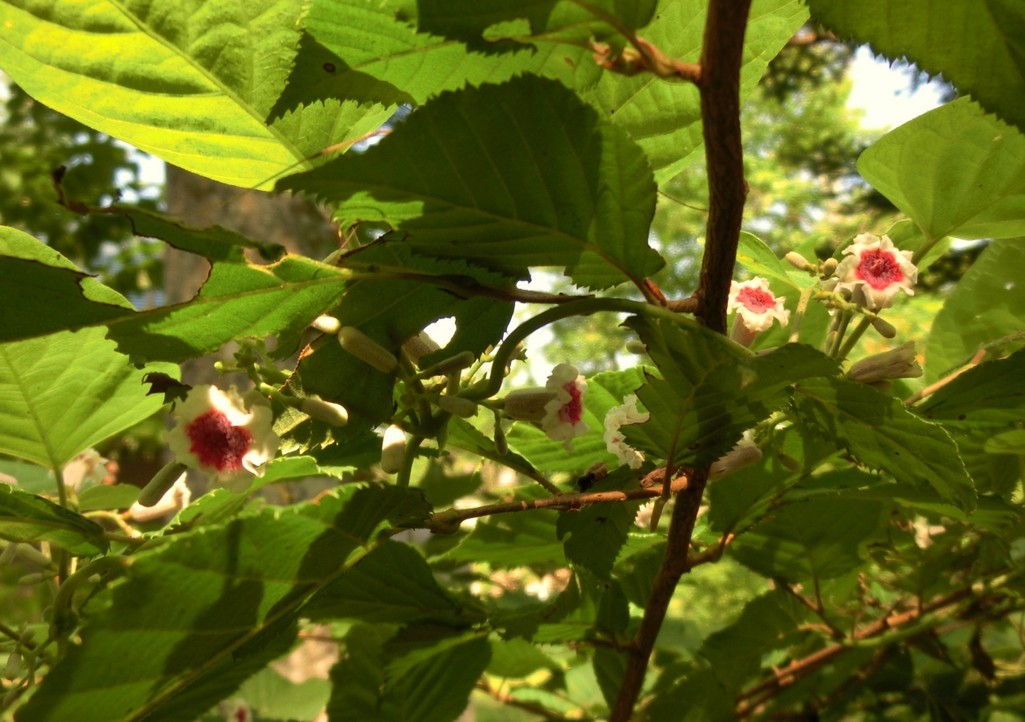 木に絡んだつるに可愛い花をつけているのは早乙女花。でも一般的には形がお灸に似ているところからヤイトバナとか、においがとってもくさいのでヘクソカズラと呼ばれています。