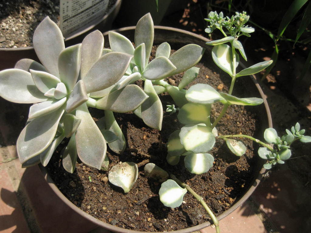 去年、おばさんに頂いた多肉植物を挿し芽しました。品種がわからないのでご存知の方がいらっしゃったら教えてください。