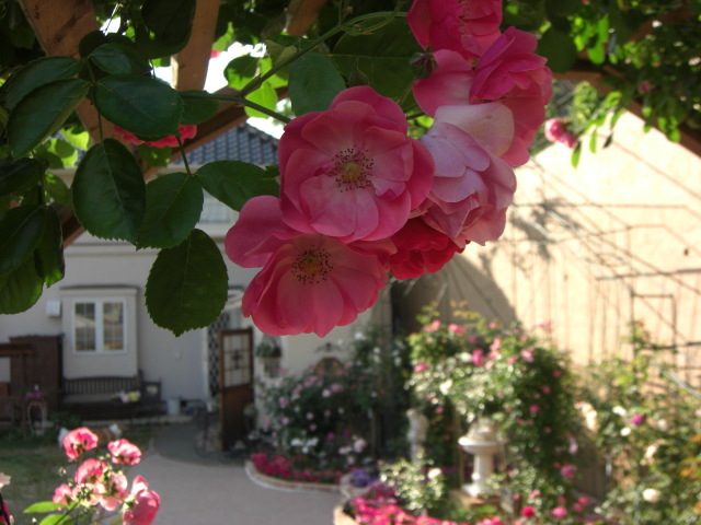 とても、素敵に撮れていますよ♪バラも綺麗ですが奥のお家も可愛らしいですね(^o^)