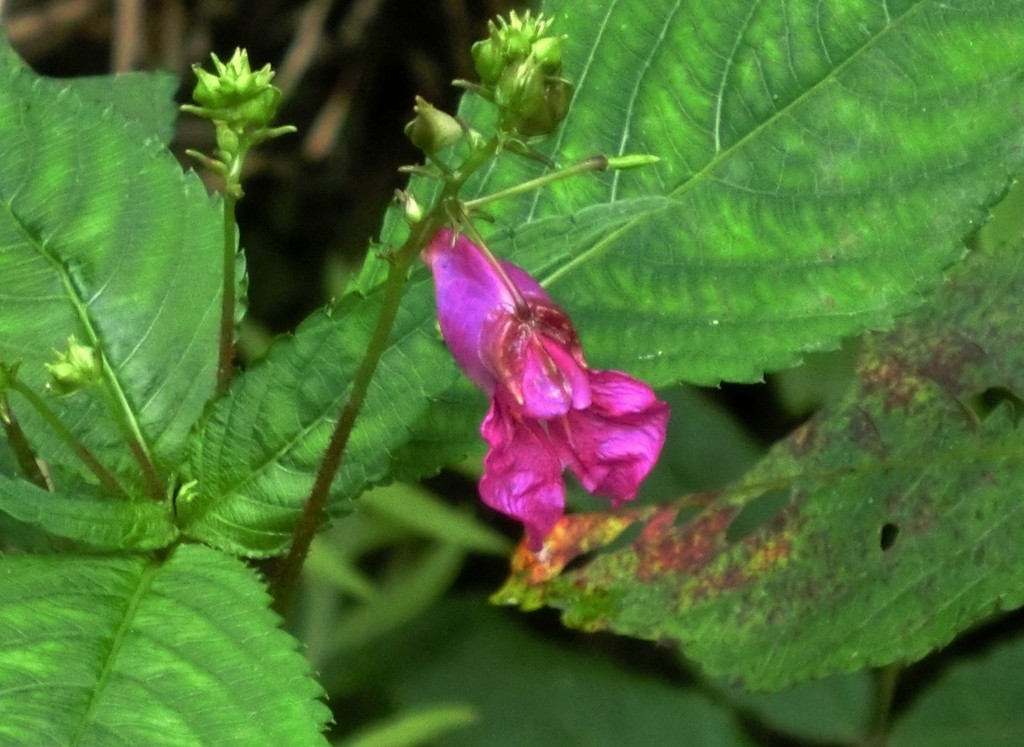 キンセンカの仲間のツリフネソウ。黄色のキツリフネとともにこのあたりではポピュラーな野草です。種はキンセンカと同じように触るとはじけて飛びます。