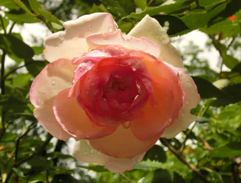 昨日の朝から今朝まで降り続いた雨にも負けず、ピエール・ド・ロンサールの蕾がきれいに開いていました。