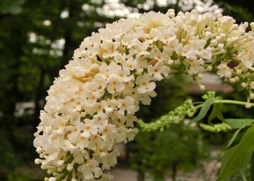 去年大胆に剪定しすぎたのか芽吹くのが遅れていたブットレア、今頃になってやっと真っ白な花を咲かせてくれました。