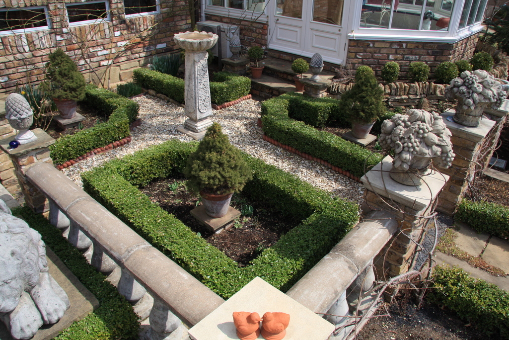 この写真 すっきりしてて、さっぱり刈り込まれてて、すがすがしいですね^^ コンサバトリーの中から見物しているワンちゃんがかわいらしいですね♪