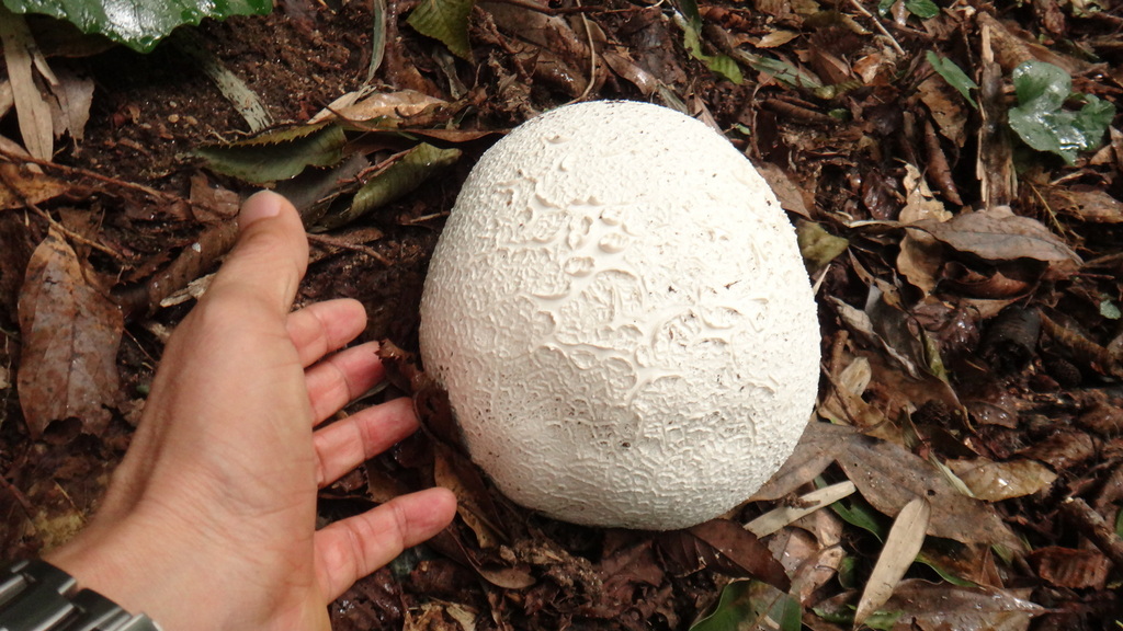 オニフスベってバレーボールぐらいまで大きくなるようですね。こちらでよく見かけるツチグリやホコリタケと同じ仲間とは思えませんね。ツチグリと同じように中が白いときは食べられるようですが、とても食べる気になりませんが・・・。