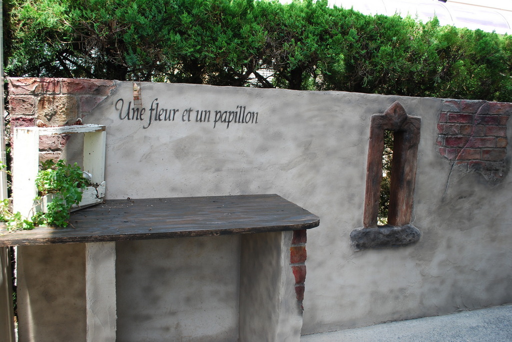 モルタル造形、なかなか味がありますね。天板もモルタルですか?