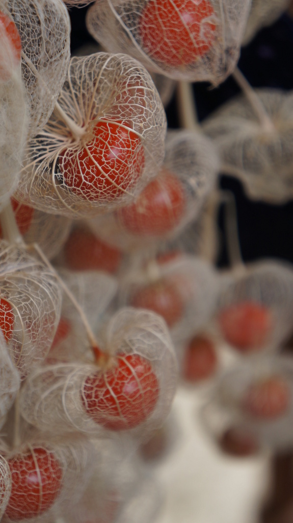 お久しぶりです(*^^*) 暑い夏でしたね~!さすがにウチの庭でも花が少なかったですよ^^; 異常気象もここまでくると困ってしまいますね。 白い葉脈のほおずき、とっても綺麗です(*´▽`*) ♡