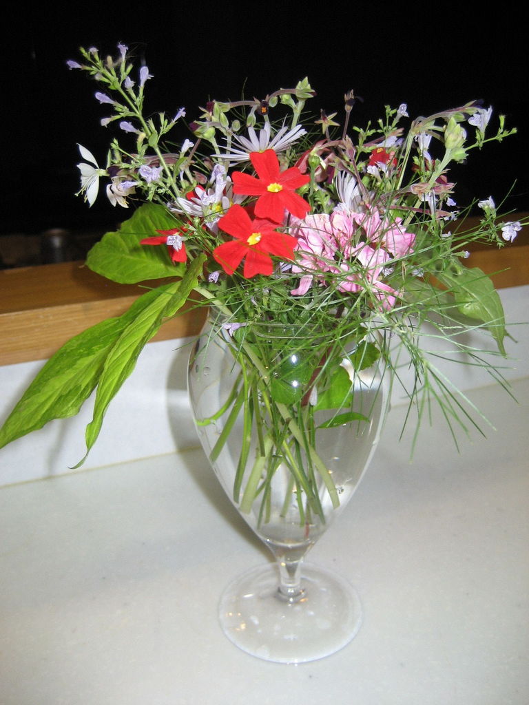 ベランダで育てた花たちをテーブル花で楽しんで