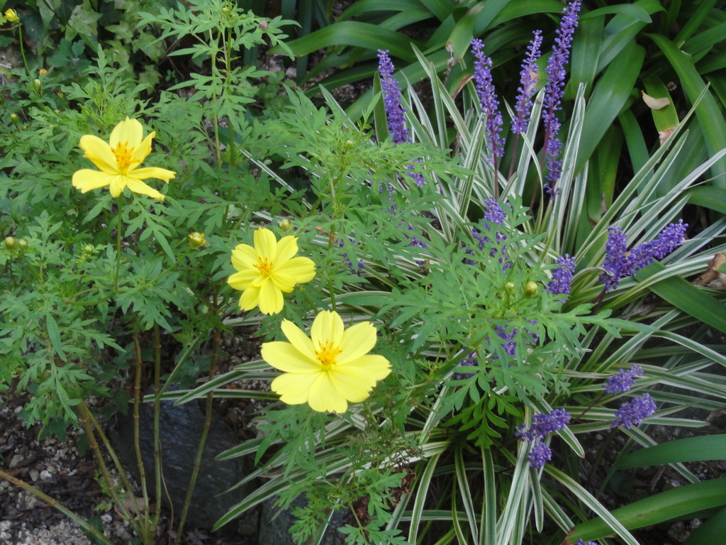 黄花コスモスとヤブラン