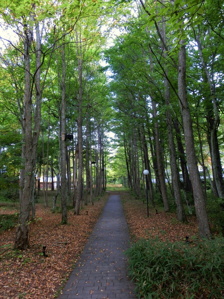 軽井沢は朝方の気温が10度を下回る日が多くなってきており、先日には3.5度まで冷え込みました。これは朝の散歩コースのホテルの中庭にある桂並木。枯葉の絨毯が始まっています。