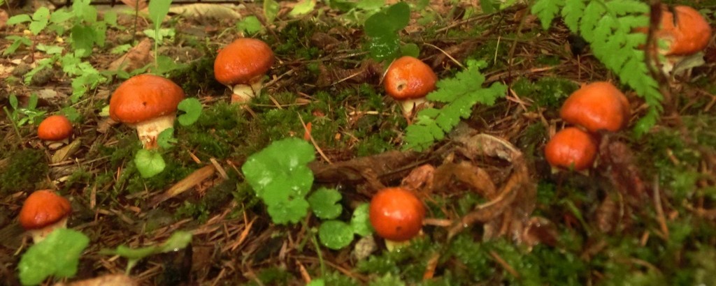 庭のカラマツの周りには、いまこんな可愛いキノコの赤ちゃんが顔を出しています。これはこちらではリコボウと言ってみんなに親しまれている美味しいキノコです。