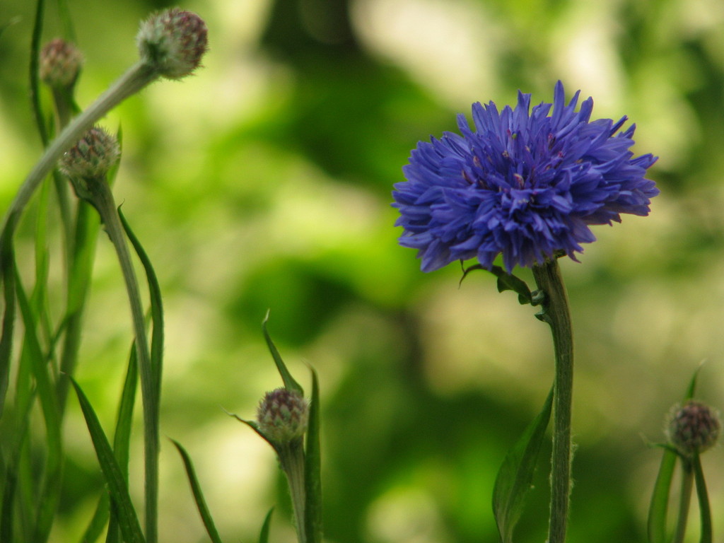 種から育てた矢車草 大好きな草花 薔薇に庭によく溶け込みますのよ。