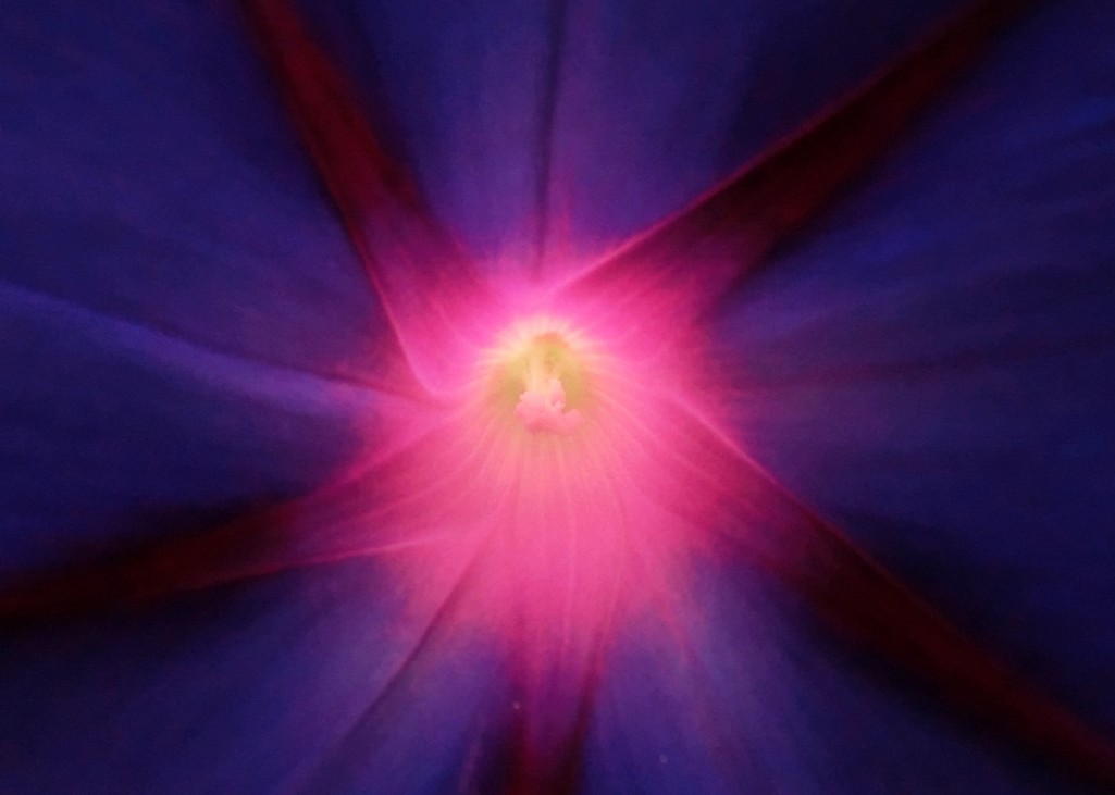 秋も深まりつつある軽井沢のあちらこちらでいま満開を迎えている赤みを帯びた濃紺のマルバアサガオをアップで撮りました。