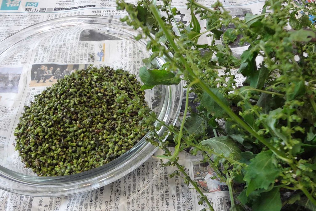 最後までシソを食べつくそうと、シソの実の佃煮に挑戦しました。この段階でいい香りに包まれて幸せ!!