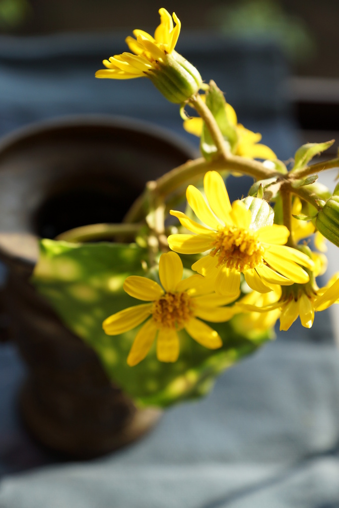 ツワブキの花。一輪お部屋に飾ってみました。