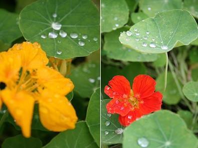 雨上がりのナスタチューム、サラダの脇役に。