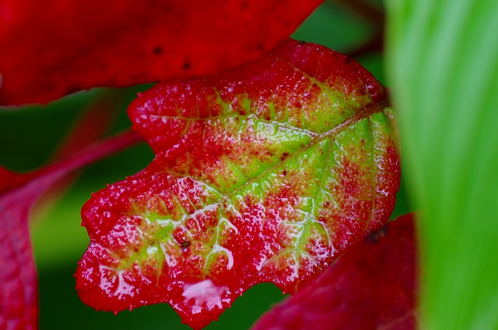 今年の庭の紅葉は夏の暑さのせいでぱっとしません・・・・ 少しきれいな赤色に染まった一枚です。