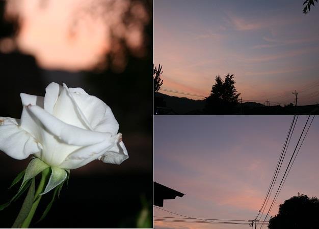 夕日の中の白いバラを。