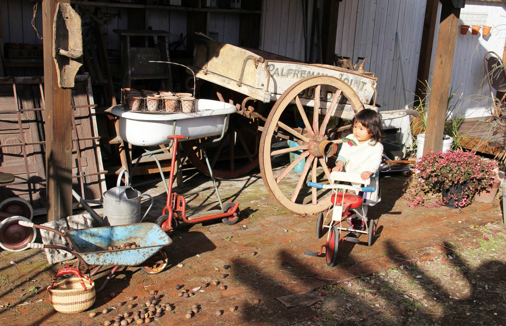 「三輪車、乗ってもいい?」 (かわいいから、いいよ。)