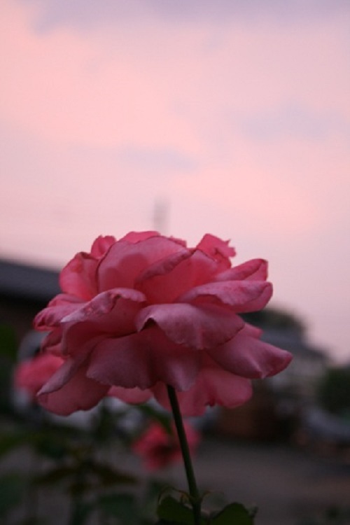 くれ馴染む秋の夕暮れ色にほんとにぴったりのバラの色ですね。ちょっぴり、おせんちになりました。.。o○