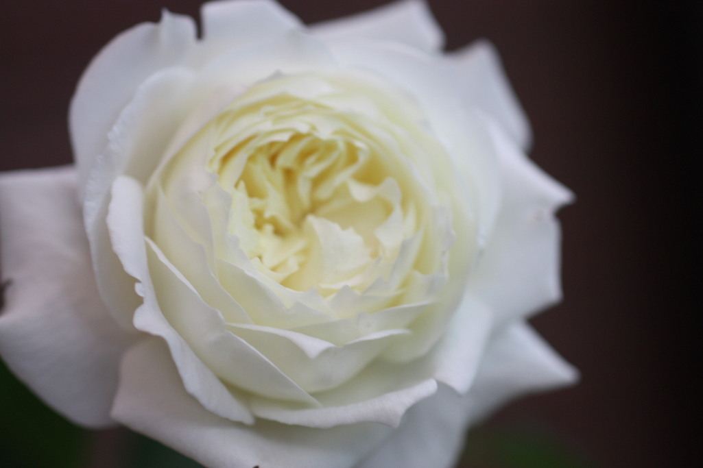 花びらがかすかに黄緑を帯びた純白で透明感のある素敵なバラです。