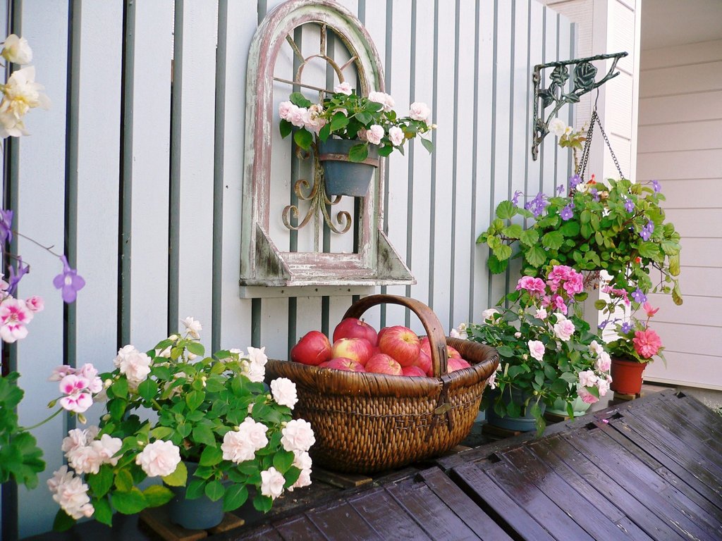 とっても可愛いコーナーですね。実のなる木があるっていいですね。たっぷり籠に持った姿、絵になります、美味しそう!