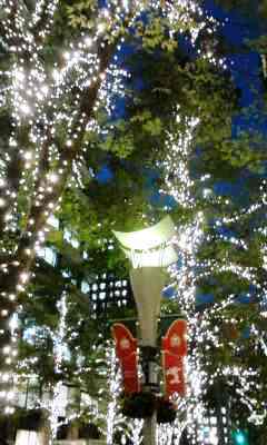 秋のライトアップもとても素敵です。まだ緑の葉の残る大木にきらめく光がより華やかに映えて、。。秋風の中のブラ散歩はとても気持ち良かったです。