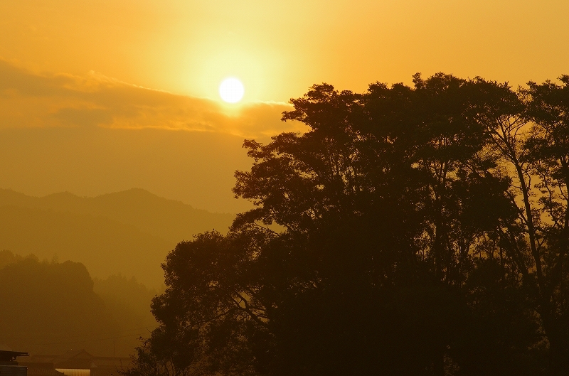 天気予報は雨 ゆっくりスタートして出会った朝日 綺麗でした。