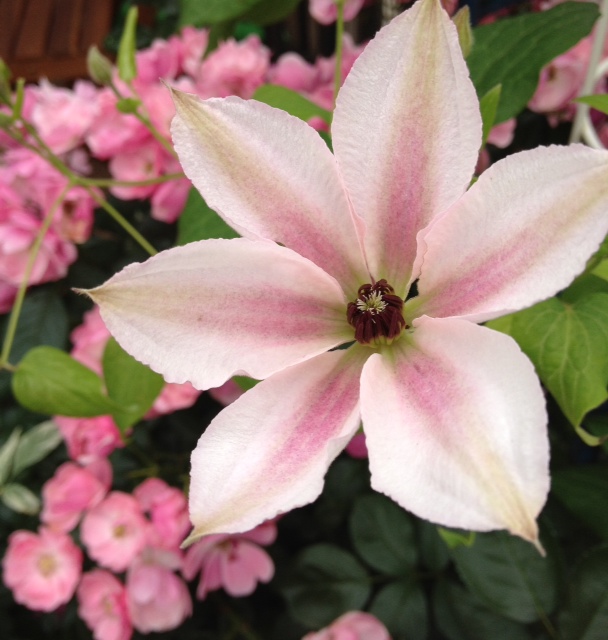 今年もミクラが満開でした!!ピンクの筋が入ってとっても素敵でしょ!!足元に咲くアンジェラのピンク色ともマッチして、我が家のカゼボの前は華やでした!!